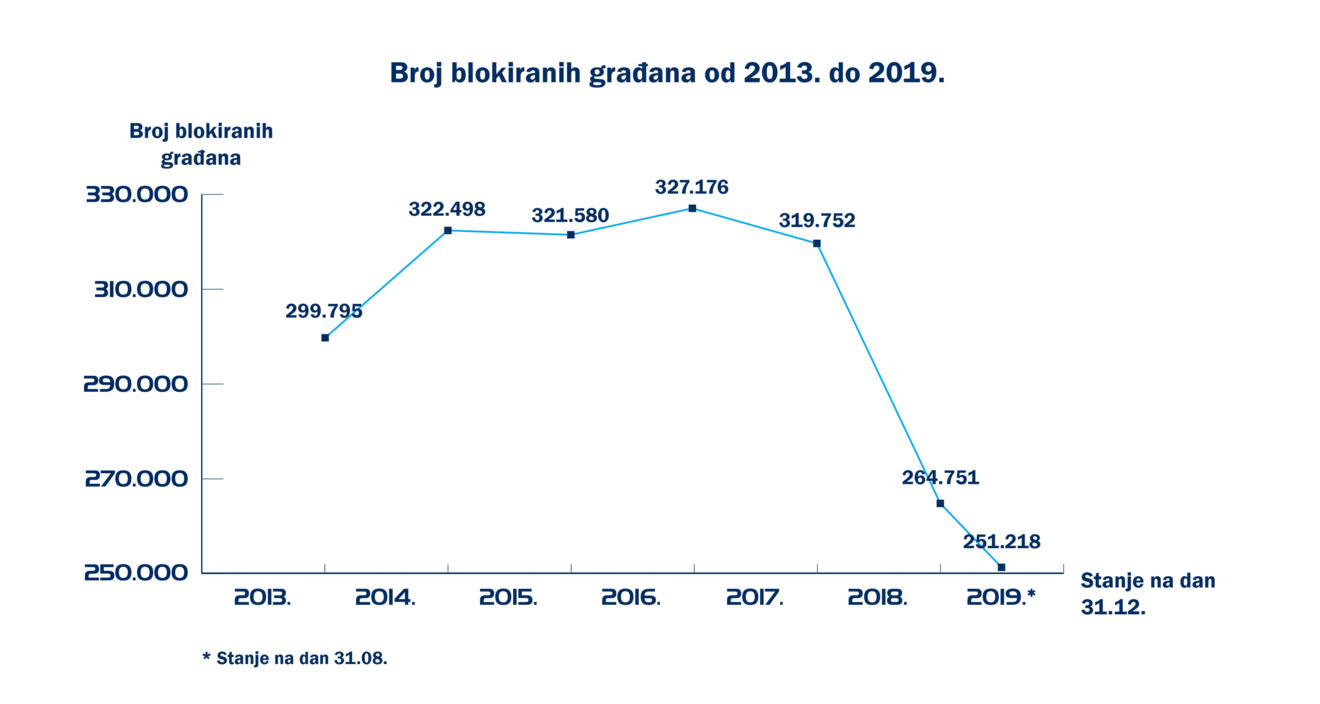 Broj blokiranih građana u padu